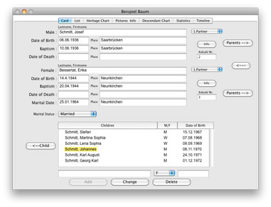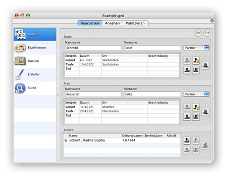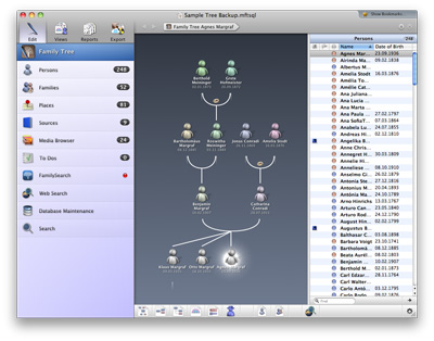MacFamilyTree offre un support et une assistance sur tous les aspects de la généalogie - de la recherche à la saisie des données, en passant par l'évaluation et la visualisation. Ajoutez des médias tels que des photos et des vidéos, documentez les endroits où des événements importants ont eu lieu et amusez-vous de la façon avec laquelle MacFamilyTree transforme les caractéristiques et les chiffres en leçons d'histoire captivantes.