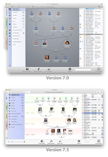 Évolution de l'interface de MacFamilyTree au fil du temps