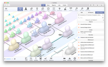 Parcourez le large éventail de graphique de MacFamilyTree, consultez des rapports ou explorez l’histoire de votre famille sur le globe virtuel et vous comprendrez aisément pourquoi c’est l’outil parfait pour vos besoins en matière de généalogie.
