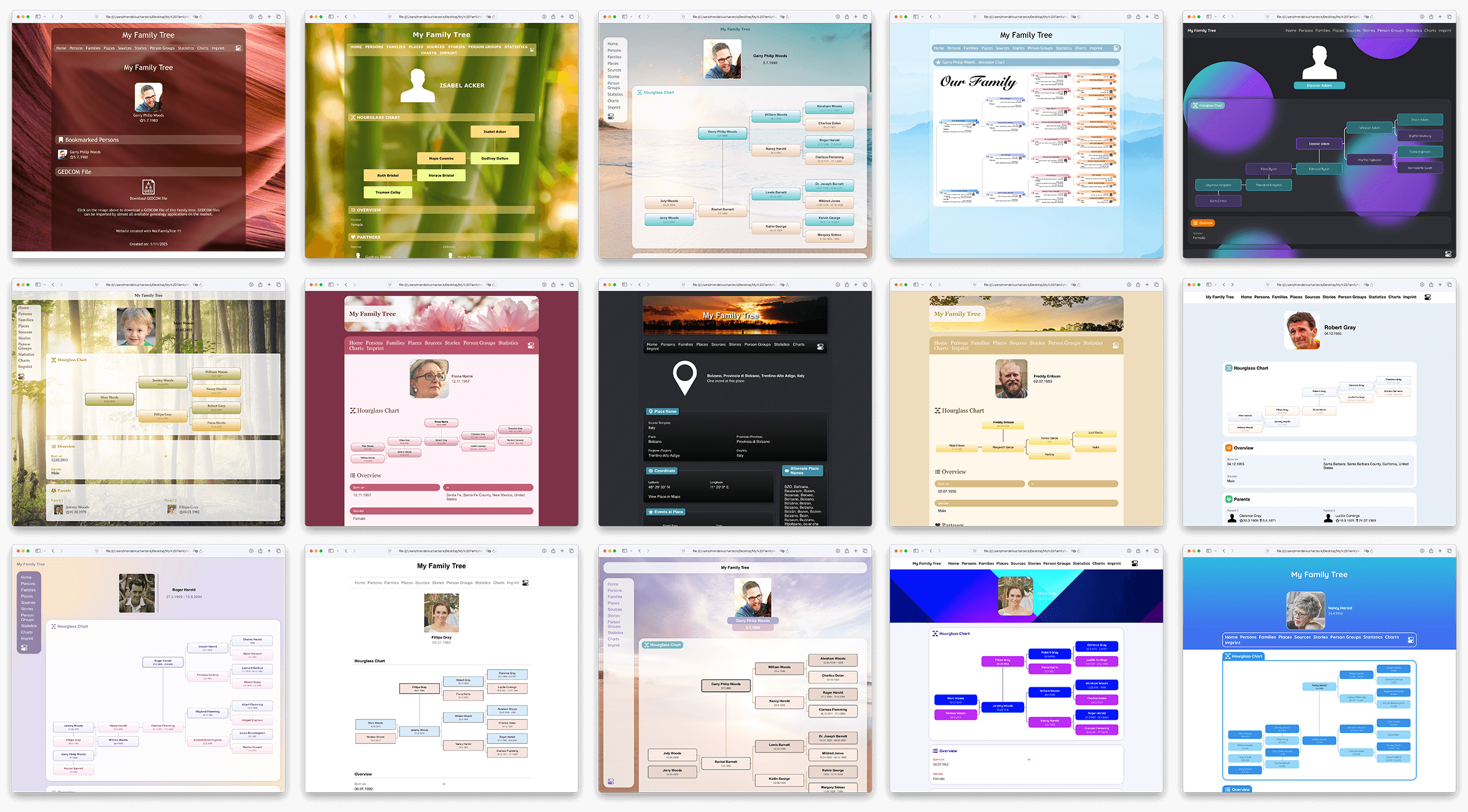 Si vous souhaitez publier votre arbre généalogique sur un site internet, la fonction d'exportation de site internet de MobileFamilyTree avec une protection par mot de passe optionnelle est la solution idéale. Nous avons entièrement reconçu l'exportation internet, pour permettre des téléchargements encore plus rapides, des pages beaucoup plus petites, de nombreux nouveaux thèmes et maintenant, pour la première fois, une fonction de recherche pour les pages publiées. Pour toutes les pages que vous choisissez de partager avec d'autres, les visiteurs du site Web peuvent basculer entre différentes versions linguistiques, ce qui rend encore plus pratique la visualisation et la navigation des résultats de votre recherche d'histoire familiale.