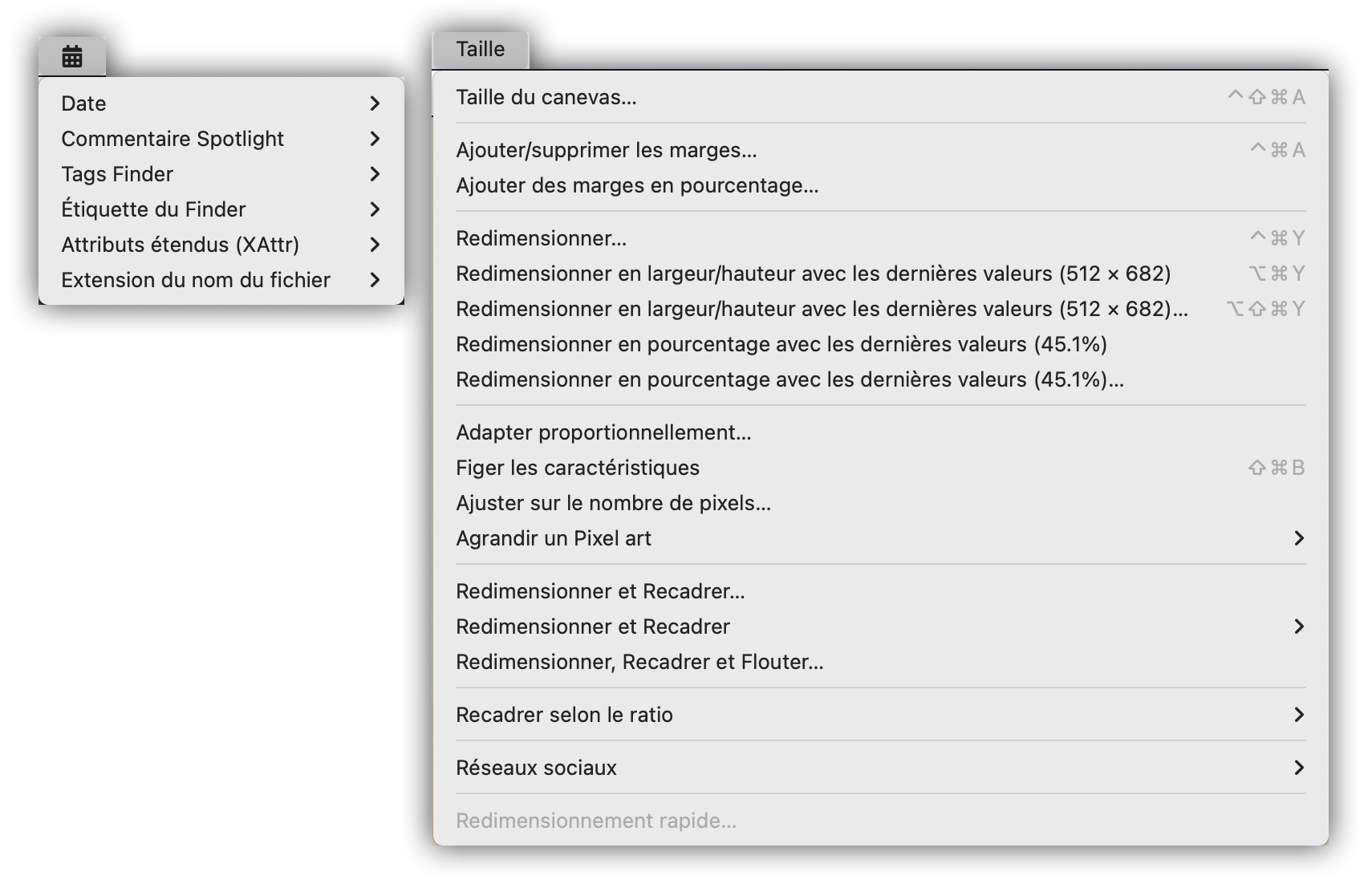 • Éléments de menu distincts pour l'option de préremplissage des trois commandes.