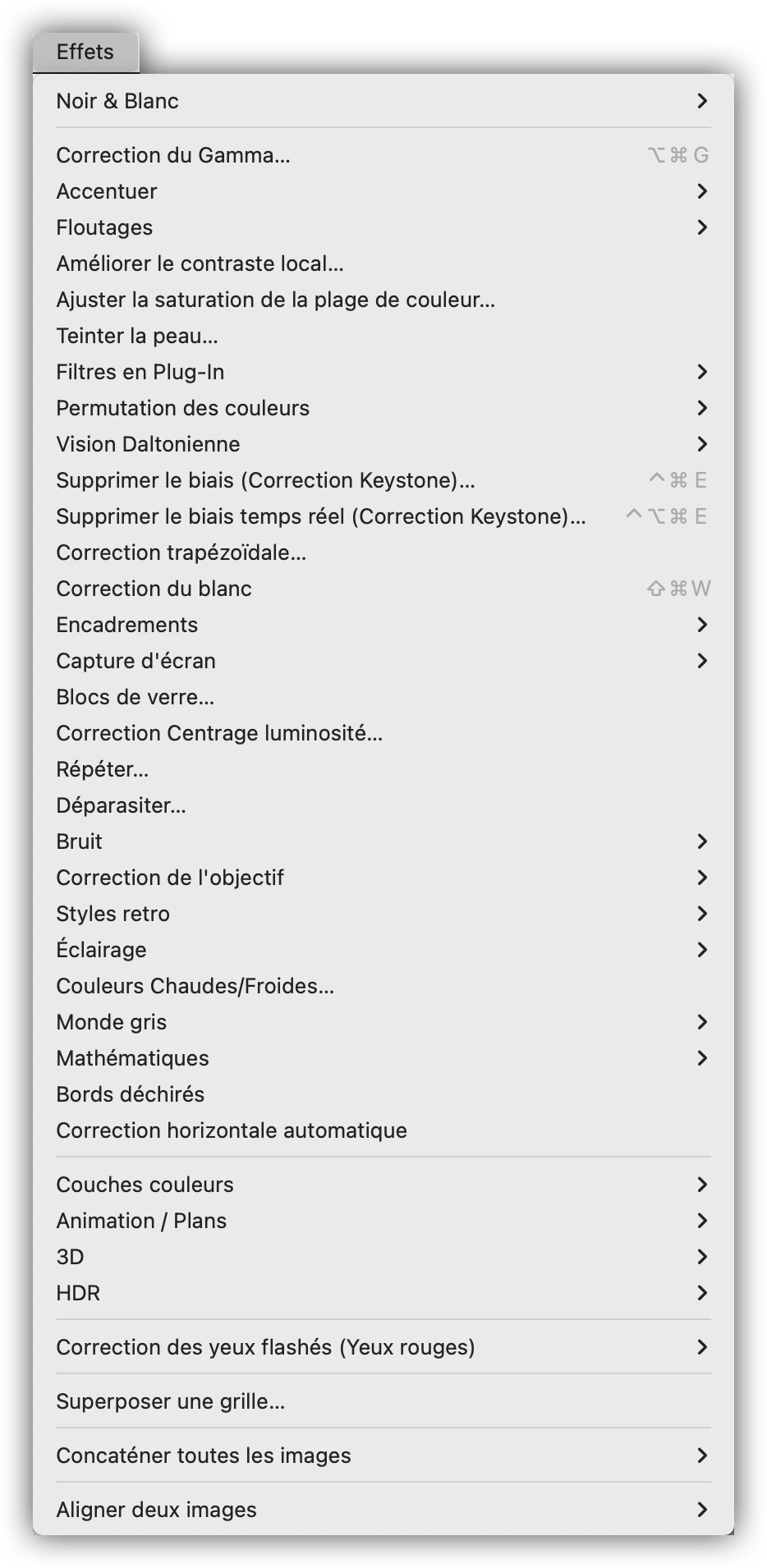 Extraits non exhaustifs de quelques fonctions d'Édition d'images dans GraphicConverter 12.