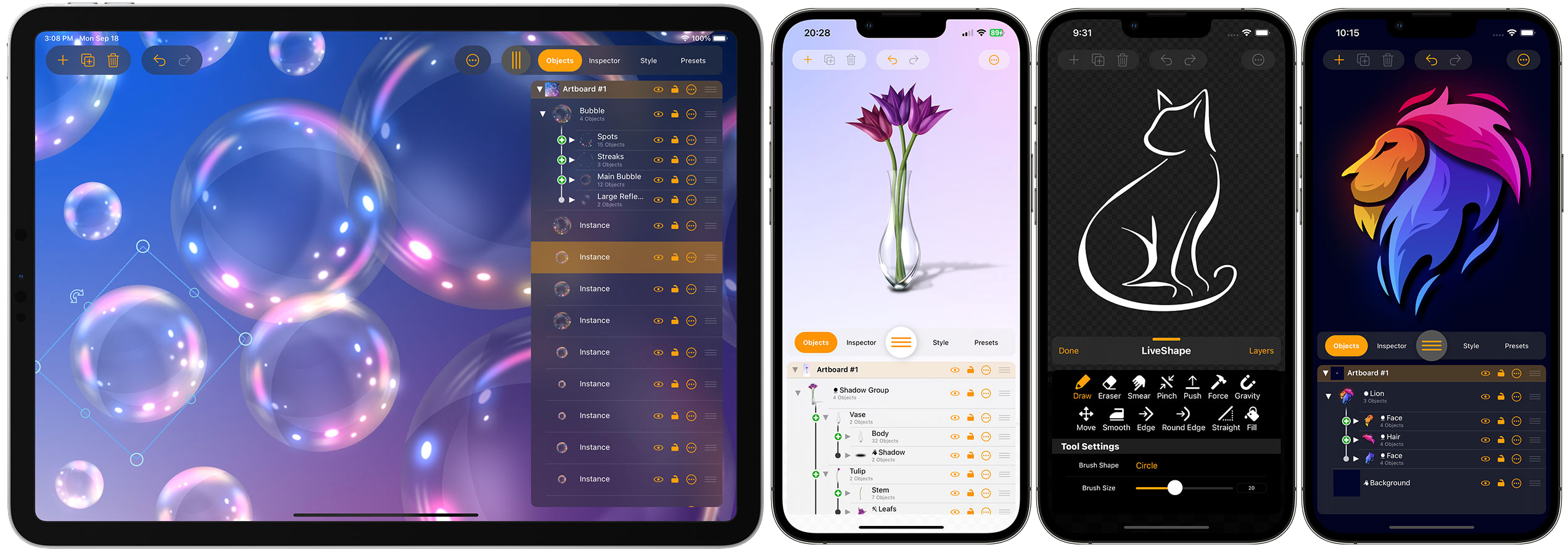 Application de design vectoriel polyvalente pour iPhone ou iPad