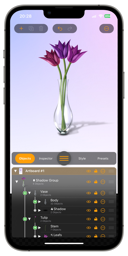 Vous êtes fan de l'Apple Pencil ? Logoist 5 pour iPad est entièrement compatible avec l'Apple Pencil. Non seulement avec la première génération, mais aussi avec la deuxième génération du dispositif de saisie intelligent d'Apple. Travaillez avec plus de précision que jamais et utilisez l'Apple Pencil pour contrôler l'ensemble de l'application. La pression, l'inclinaison et la rotation sont toutes détectées, de même que la proximité de la pointe de votre crayon avec l'écran ("survol" pour voir ce qui va être sélectionné lorsque vous interagissez avec des éléments ou des calques), bien que ces fonctionnalités nécessitent un Apple Pencil 2.