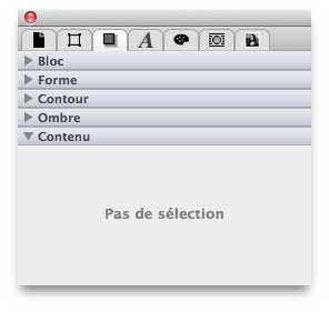L'inspecteur de contenu propose différents paramétrages pour les blocs Texte et Image, les groupes et le contenu de PDF inséré. Si un bloc ou un contenu n'est pas pris en charge par l'inspecteur de contenu, l'état suivant sera affiché :