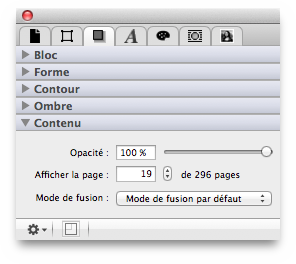 Cliquez sur la petite roue dentée située dans le coin inférieur gauche de l'inspecteur de contenu afin d'accéder à des fonctions supplémentaires.