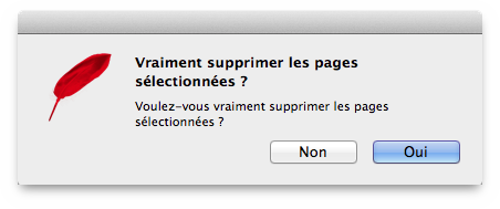 La sélection de cet élément de menu équivaut à un clic sur le bouton [–] comme décrit plus haut. (Utilisez [Commande]+Clic souris pour sélectionner plusieurs pages.)