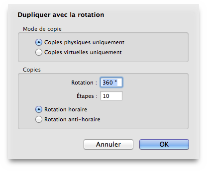 Lorsque vous sélectionnez cet élément de menu, les objets ne seront pas immédiatement dupliqués. Mais un panneau va s'afficher vous demandant d'abord le nombre de copies à réaliser.