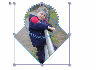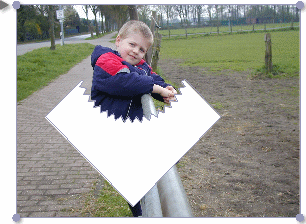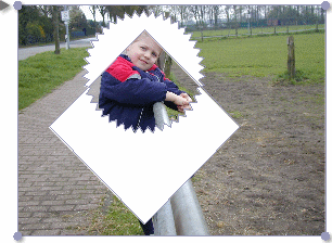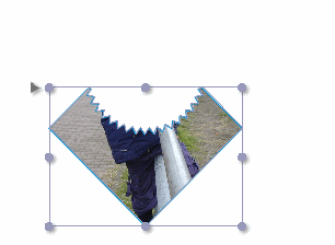 L'exemple 2 utilise également deux formes simples plus une image. La couleur de contour du bloc a été rendue transparente et le contour a été activé pour réaliser le masquage d'une partie de l'image. Ce qui donne d'intéressants effets de masquage d'image.