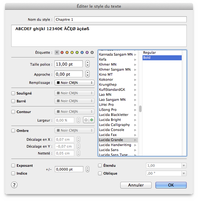 et paramétrez la taille de la police avec la valeur 13 pt.
