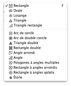 Utilisez cet outil pour créer des blocs forme. iCalamus dispose de plusieurs formes, allant de simples rectangles aux étoiles.